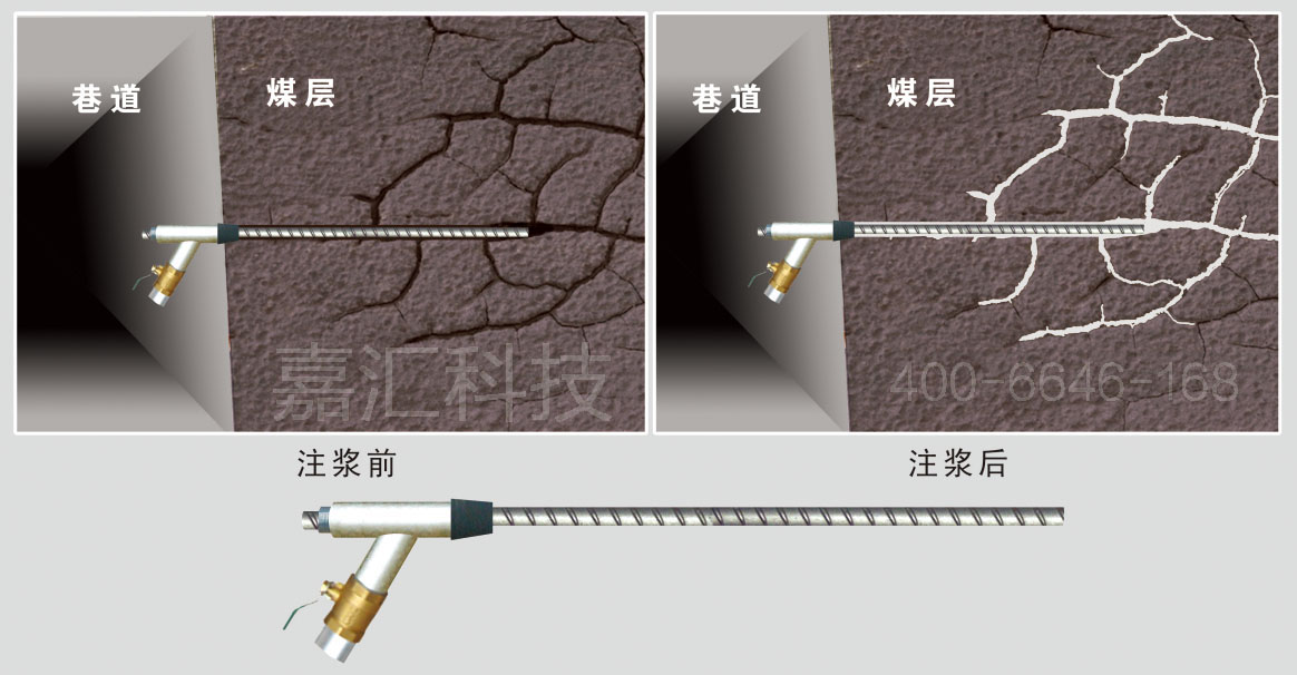 在現(xiàn)有的錨桿封孔中用錨固劑來加固錨桿,錨桿耐拉力小,加固不牢,周邊裂隙進不去沙漿不能加固。用空心錨桿注沙漿可達到加固作用,但空心錨桿價格高,拉力不如螺紋鋼。